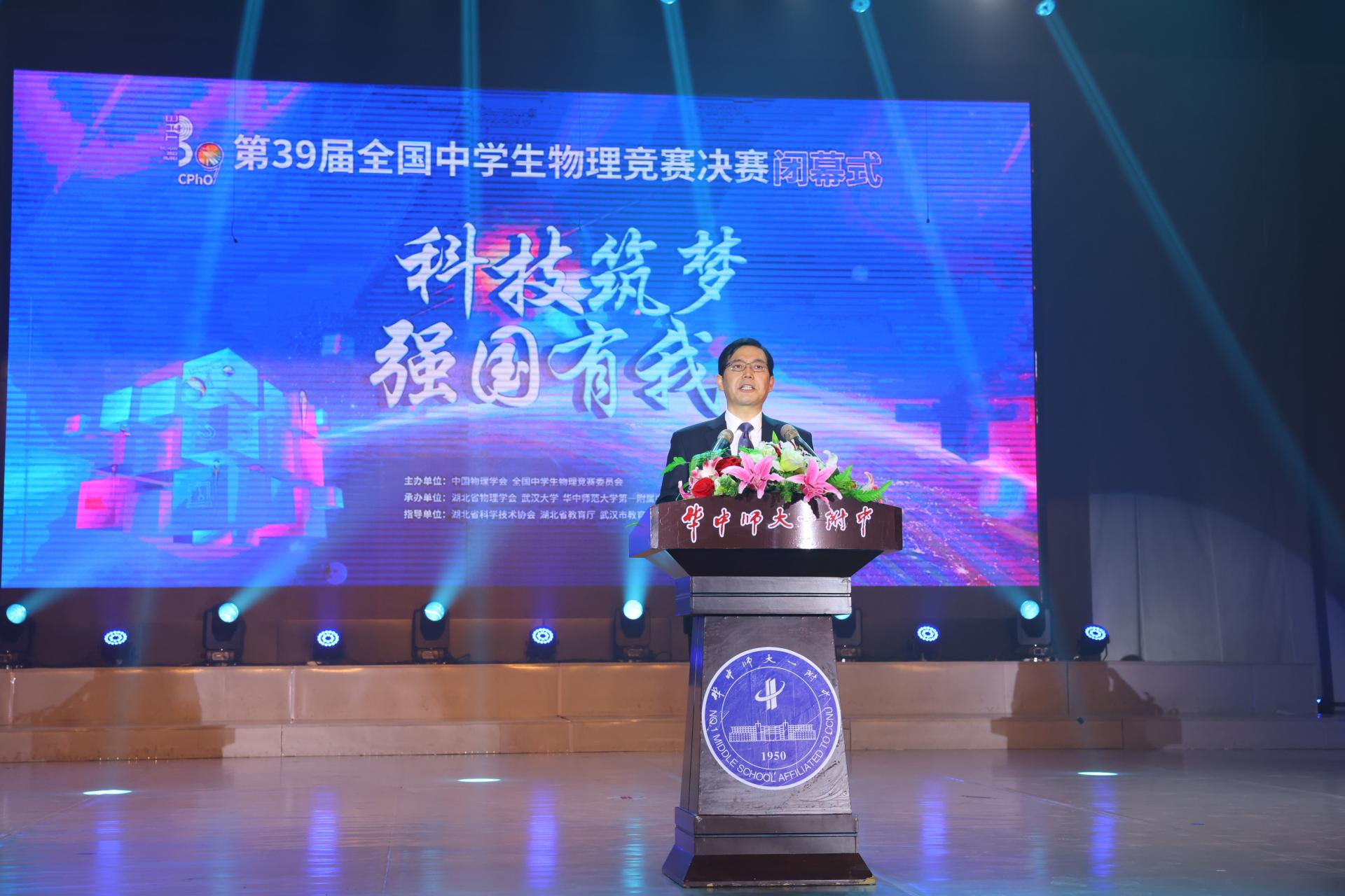 華大在線訊(記者 郝日虹 通訊員 孫夢(mèng)嘉)“希望學(xué)校以本次大賽為新起點(diǎn),以‘培養(yǎng)未來(lái)世界引領(lǐng)者’為目標(biāo),爭(zhēng)創(chuàng)世界一流品牌中學(xué),以深厚的文化底蘊(yùn)、鮮明的辦學(xué)特色、過硬的教育質(zhì)量為湖北教育事業(yè)創(chuàng)新發(fā)展再立新功。”11月7日,湖北省副省長(zhǎng)、中國(guó)工程院院士邵新宇在第39屆全國(guó)中學(xué)生物理競(jìng)賽決賽閉幕式致辭中,為華中師范大學(xué)第一附屬中學(xué)在本屆競(jìng)賽中再創(chuàng)佳績(jī)“點(diǎn)贊”。校黨委書記趙凌云、校黨委副書記陳迪明、競(jìng)賽組委會(huì)領(lǐng)導(dǎo)及專家出席閉幕式。