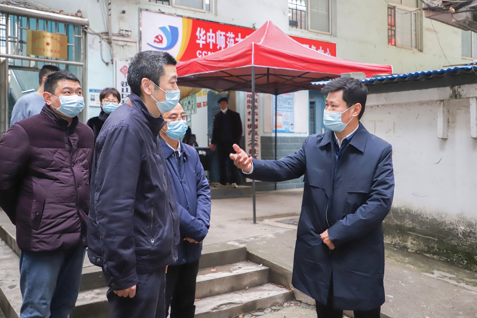 華大在線訊(記者 華軒)11月29日,校黨委書記趙凌云,校黨委副書記查道林等一行前往華師社區(qū)、南湖學(xué)生宿舍及南湖校區(qū)商戶,調(diào)研疫情防控措施落實、黨員干部下沉一線、學(xué)生思想動態(tài)等情況。學(xué)校辦、黨委組織部、黨委宣傳部、黨委學(xué)工部、人事部、后勤保障部、保衛(wèi)處等相關(guān)負責(zé)人參加檢查。