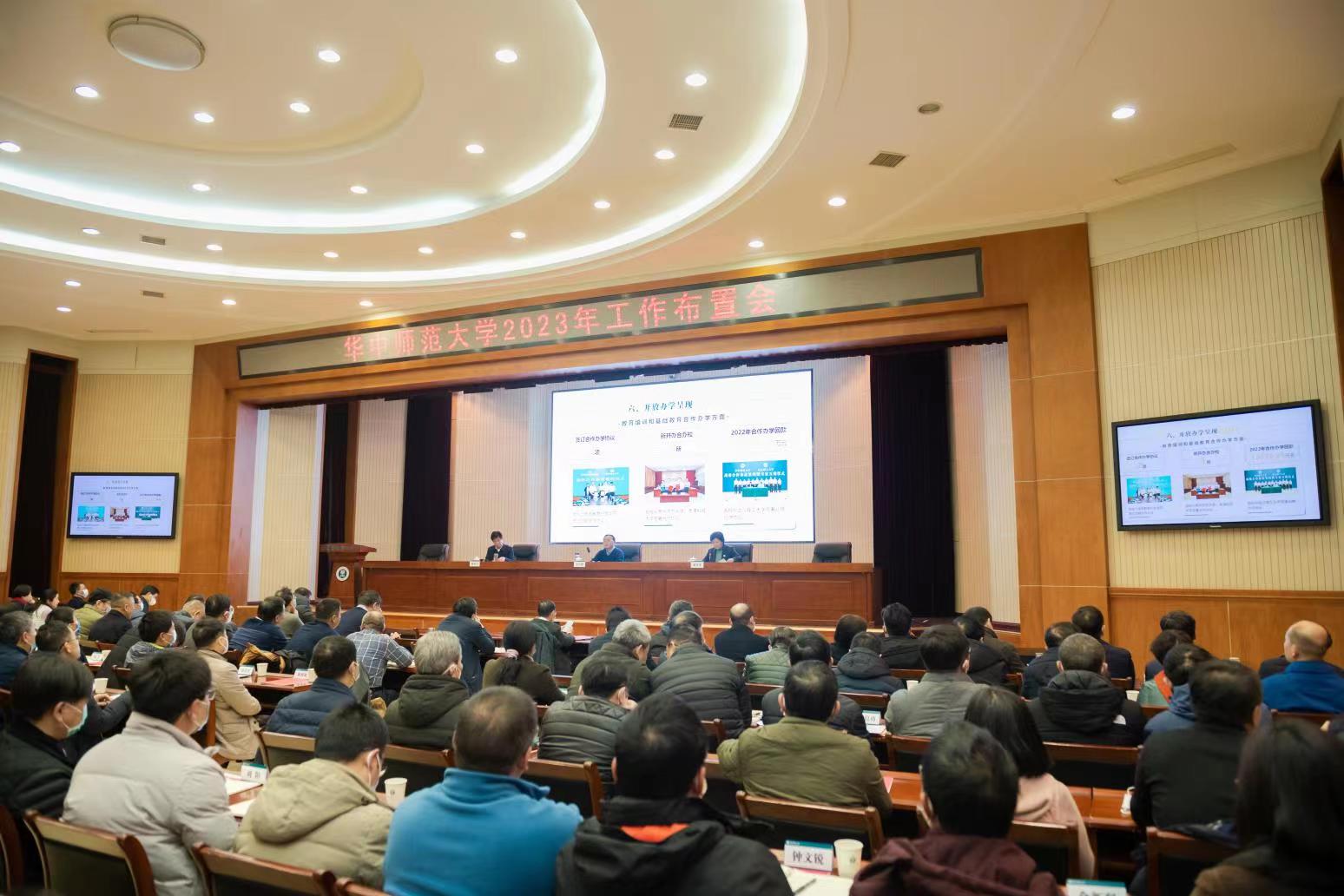夏立新強調,2023年是全面貫徹落實黨的二十大精神開局之年,是120周年校慶之年,是學校事業發展承上啟下的關鍵之年。黨的二十大首次把教育、科技、人才進行“三位一體”統籌安排,賦予教育新的戰略地位和歷史使命。我們要“跳出華師看華師”“跳出當下看未來”,積極搶抓教育強國、教育數字化轉型、教育優先發展、教師教育振興等疊加機遇,在謀勢中搶占先機,在求變中開拓新局。要以“開局就是決戰、起步就是沖刺”的精神狀態,滿懷信心、同心同德,苦干實干、奮勇前進,全面加快學校高質量發展,全面建設教師教育領先的世界一流大學,以優異的成績迎接建校120周年。