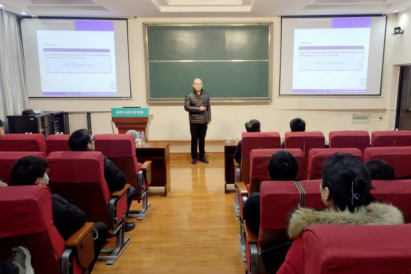 論壇期間,多位院士應邀作專題報告,為學院師生帶了數場精彩的學術盛宴。張平院士做客“數苑博雅講座”,以《3-D anisotropic vs classical incompressible Navier-Stokes systems》為題,介紹了三維各向異性和經典不可壓Navier-Stokes方程組的研究現狀及其取得的突破性進展。徐宗本院士以《如何學習學習方法論——AI for AI的一個嘗試》為題,以基本的先驗假設為切入點揭示了“實現機器學習自動化”是人工智能發展的必然趨勢。湯濤院士以《不確定性量化與科學計算》為題,圍繞不確定性的廣泛性、不確定性量化與科學計算等進行了系統介紹。