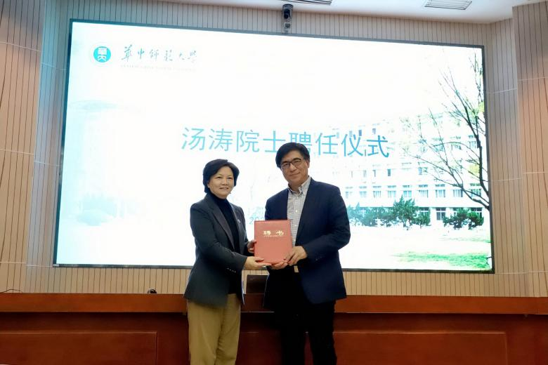 郝芳華為湯濤院士頒發“華大論壇”主講人聘書