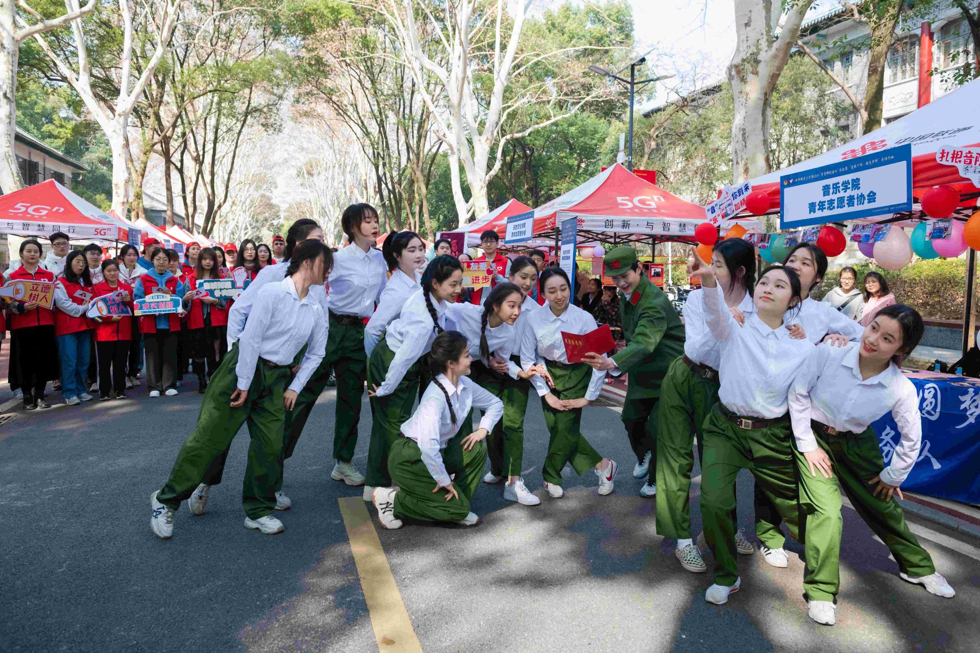 啟動儀式后,志愿服務嘉年華在桂中路舉行。桂中路兩旁設立了“理”響青年、追“鋒”青年、環保青年、樹人青年、互助青年五個主題共42個展區,來自湖北省紅十字會、武漢血液中心、華中師范大學互助社、洋雷鋒志愿服務隊、“愛我千湖”湖泊保護志愿服務隊、志愿公益社團、各學部學院(所、中心)青年志愿者協會等組織,以視頻展播、節目表演、噴繪墻報、講解介紹等形式,多樣化呈現“學雷鋒”志愿服務典型事跡、工作經驗和優秀成果。