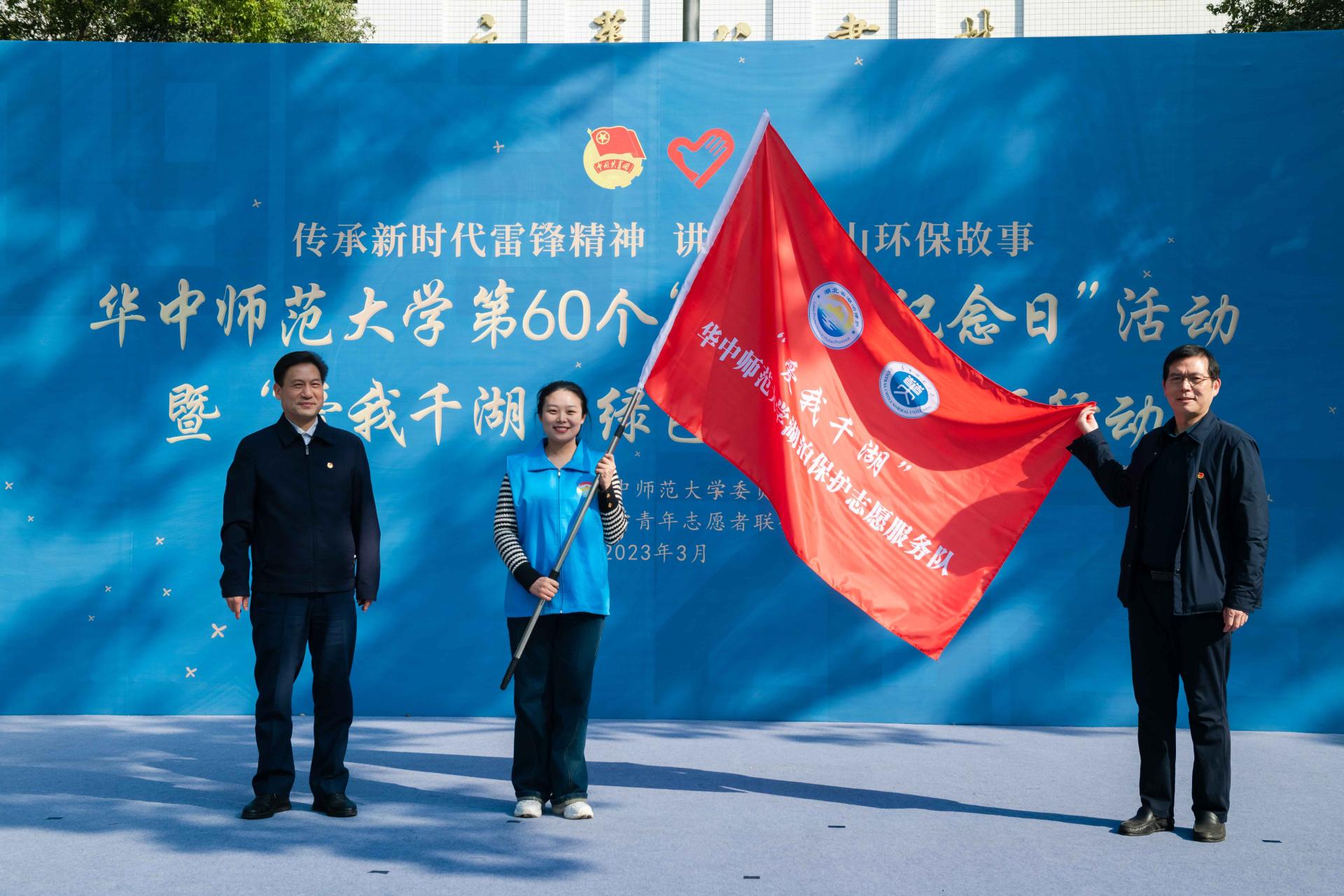為響應省水利廳、省林業廳組織的“愛我千湖”志愿服務活動,激發華師學子的環保熱情,學校成立“愛我千湖”華中師范大學湖泊保護志愿服務隊。湖北省水利廳黨組成員、總經濟師熊春茂為服務隊授旗。