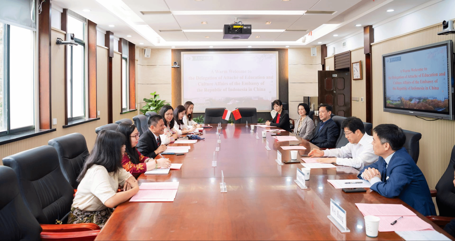 華大在線訊(記者 毛軍剛)4月13日,印度尼西亞共和國駐華大使館教育文化參贊Yudil Chatim(李健)一行來訪我校,拜會校長郝芳華,并與副校長彭雙階在行政樓三樓會議室舉行座談。國際合作與交流處、教育學院、國際文化交流學院、中印尼人文交流研究中心等相關單位負責人參加。
