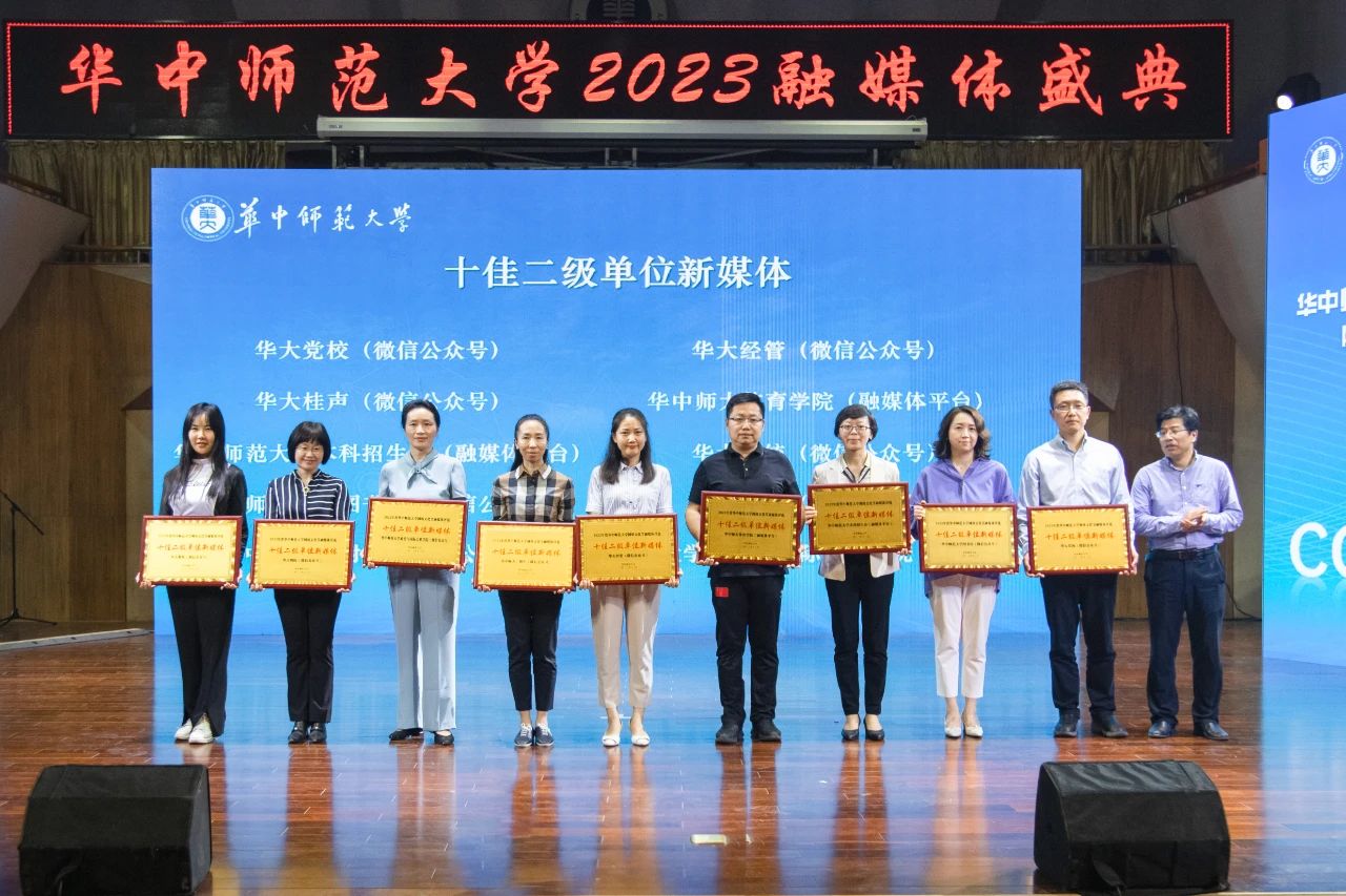 副校長彭雙階、副校長李鴻飛、校黨委副書記陳迪明,湖北省委網信辦社會工作處處長李濤,楚天都市報(極目新聞)黨委委員、副總編輯羅欣等領導嘉賓出席盛典。盛典期間,學校對2022年度融媒體評選、網絡文化節獲獎單位及個人進行了表彰,公布了華大融媒年度十大粉絲。