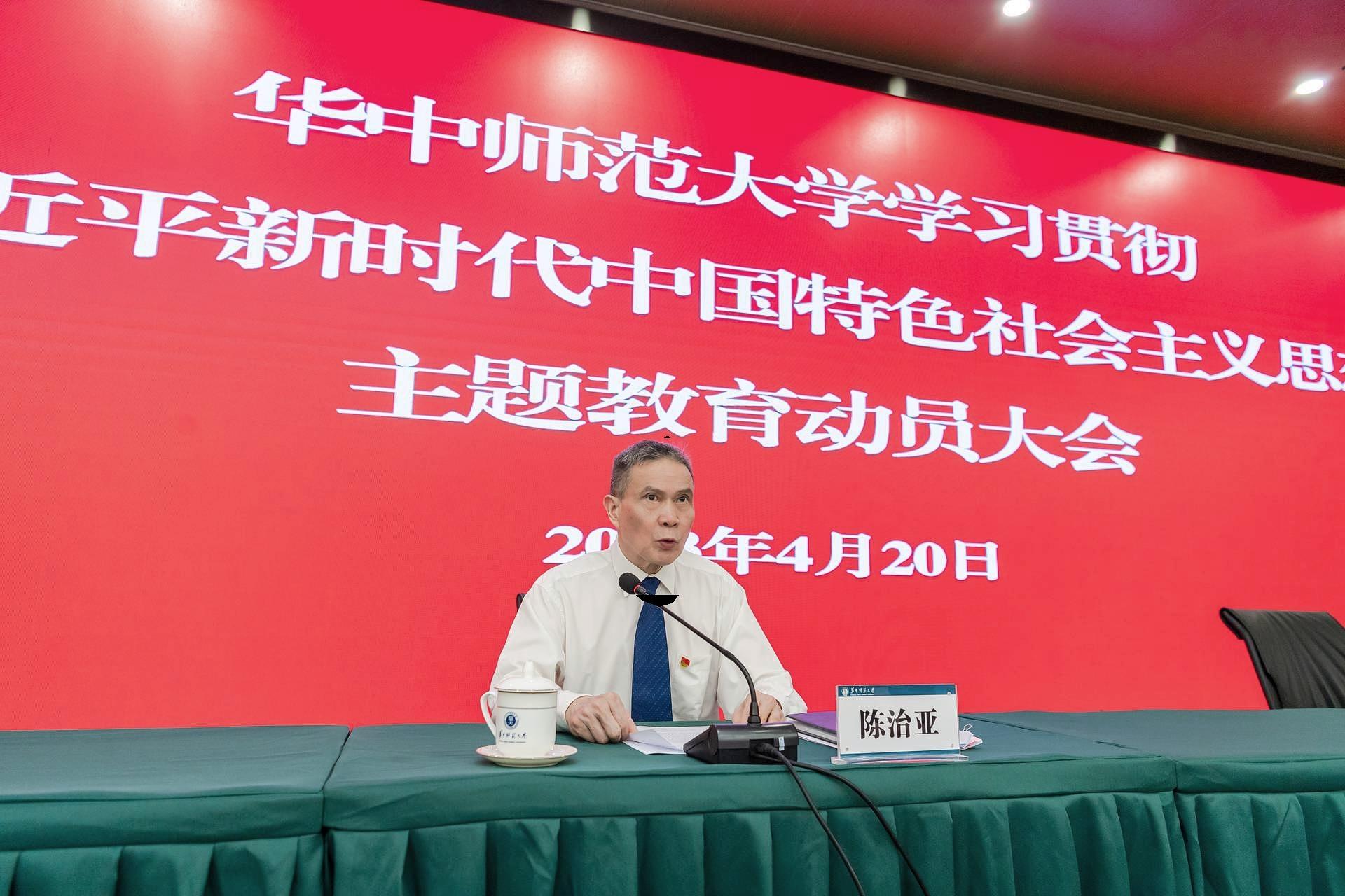 陳治亞傳達(dá)了習(xí)近平總書記的重要指示精神和黨中央、教育部黨組關(guān)于主題教育的整體部署。他指出,華中師范大學(xué)作為教育部直屬高校,開展主題教育要鮮明體現(xiàn)黨的教育方針、教育系統(tǒng)特色、直屬高校擔(dān)當(dāng),強(qiáng)化示范引領(lǐng)作用,在不折不扣完成各項(xiàng)規(guī)定動(dòng)作上當(dāng)標(biāo)桿,在彰顯教育特色、體現(xiàn)教育貢獻(xiàn)上做表率。