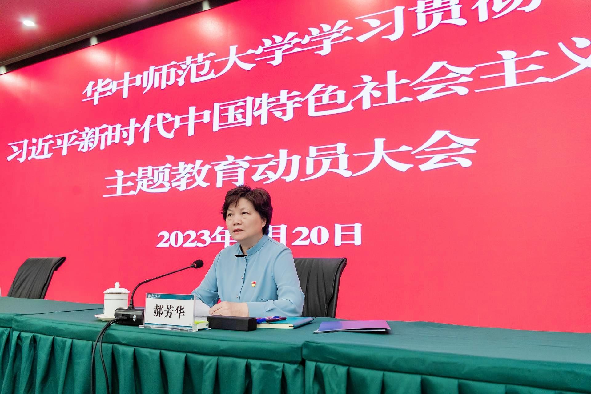 郝芳華指出,在全黨深入開展學(xué)習(xí)貫徹習(xí)近平新時(shí)代中國特色社會(huì)主義思想主題教育,是以習(xí)近平同志為核心的黨中央作出的重大部署,是貫徹落實(shí)黨的二十大精神的重大舉措,是新時(shí)代新征程全黨全國人民政治生活的一件大事。全校上下要從高舉旗幟緊跟核心、凝心聚力奪取中華民族偉大復(fù)興新勝利的政治高度,從服務(wù)全面建成社會(huì)主義現(xiàn)代化強(qiáng)國、在推進(jìn)和拓展中國式現(xiàn)代化中展現(xiàn)華師擔(dān)當(dāng)?shù)膽?zhàn)略維度,從堅(jiān)持用思想建黨、理論強(qiáng)黨、制度治黨,以高質(zhì)量黨建引領(lǐng)學(xué)校事業(yè)高質(zhì)量發(fā)展的現(xiàn)實(shí)角度,深化思想認(rèn)識(shí),堅(jiān)守初心使命,牢記“三個(gè)務(wù)必”,勇于擔(dān)當(dāng)盡責(zé),切實(shí)增強(qiáng)開展主題教育的思想自覺、政治自覺和行動(dòng)自覺。