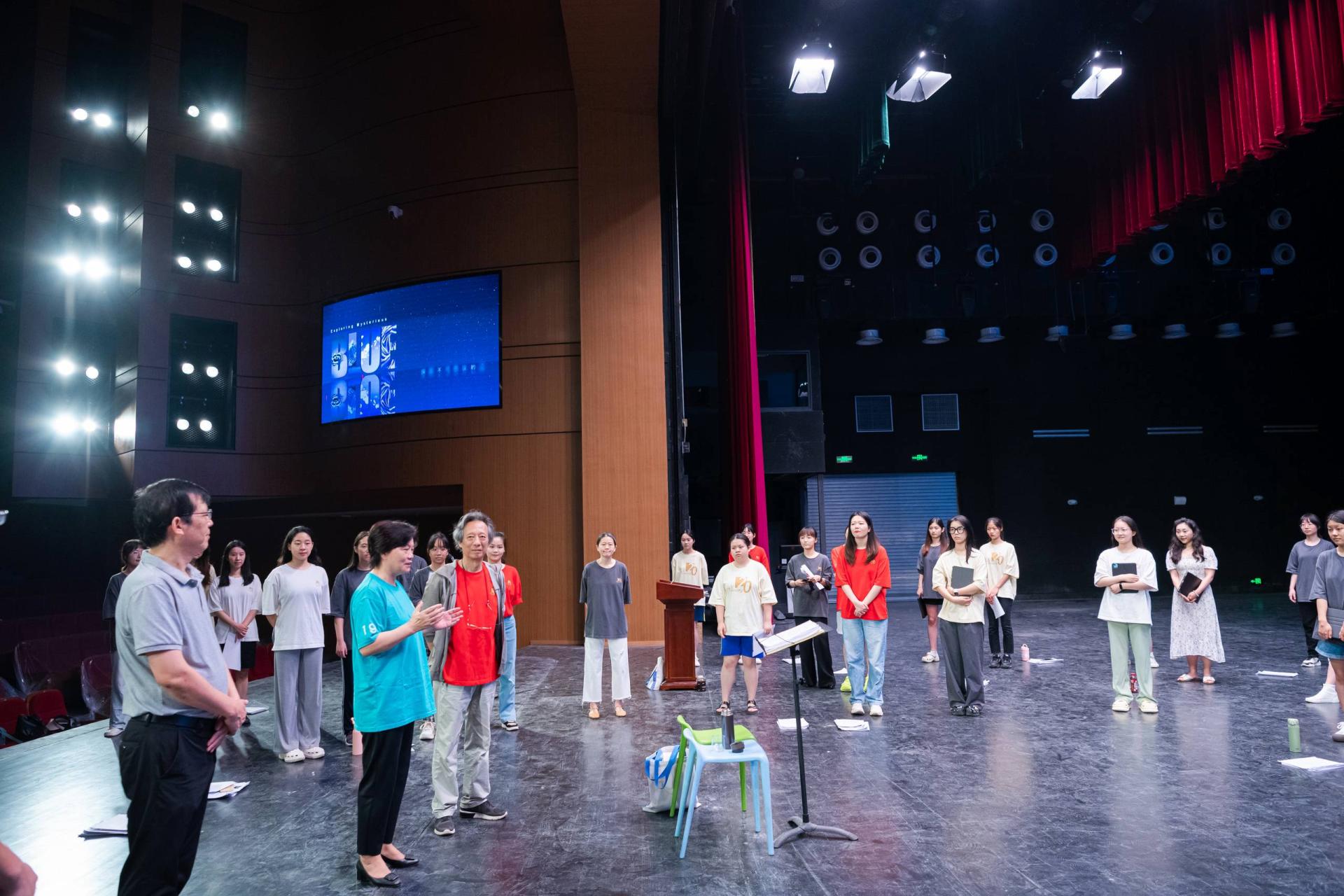 走進新大學生活動中心大禮堂,Tiankong合唱團在指揮田曉寶教授的指導下正在認真排練。郝芳華叮囑大家,“Tiankong合唱團是華師的,也是中國的、世界的。你們即將代表華師到國家大劇院演出,希望你們把最美的聲音表現出來,展示出華師的精神風貌,迎接學校120周年校慶的到來”。她強調,學校相關單位要為合唱團集訓備演提供良好環境和保障服務,確保師生排練安心。