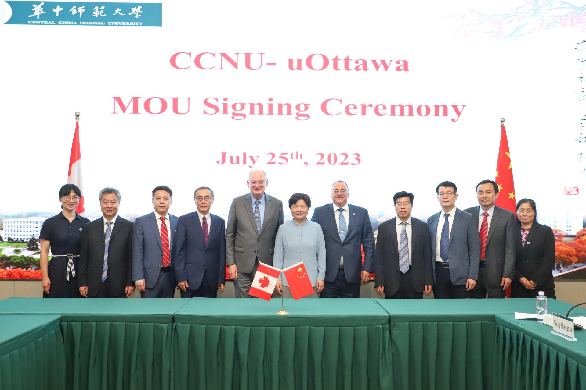 華大在線訊(通訊員 王盛夏)7月25日,加拿大渥太華大學(xué)校長(zhǎng)雅克·弗雷蒙率團(tuán)訪問(wèn)我校,校長(zhǎng)郝芳華、副校長(zhǎng)彭雙階會(huì)見(jiàn)了代表團(tuán)一行。座談會(huì)上,雙方續(xù)簽了合作諒解備忘錄并深入探討了在化學(xué)、教育學(xué)等領(lǐng)域開展學(xué)生聯(lián)合培養(yǎng)、聯(lián)合科研、聯(lián)合舉辦國(guó)際研討會(huì)等務(wù)實(shí)合作。