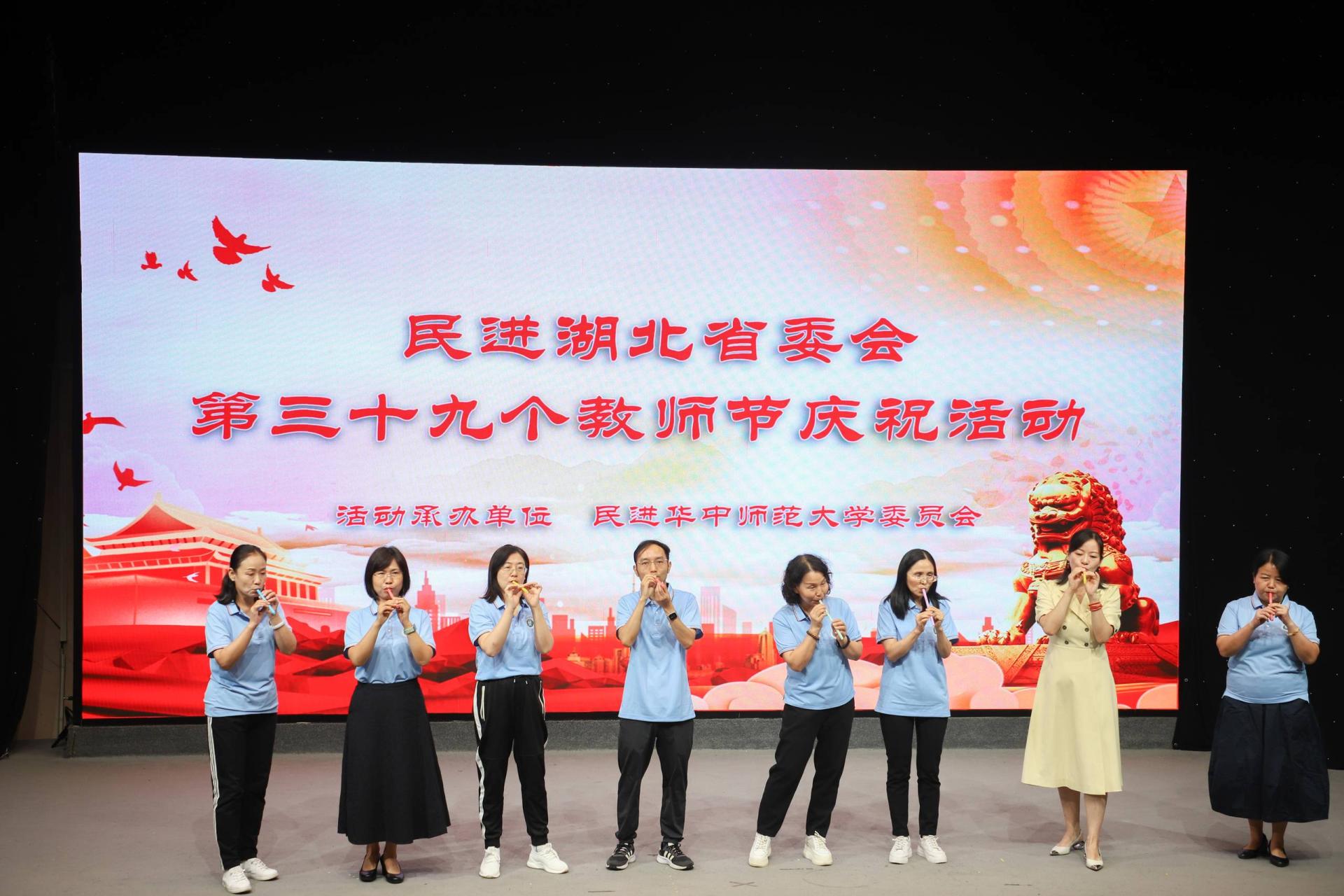 華大在線訊(記者 華軒)近日,民進湖北省委會聯合我校民進委員會在9號樓六樓演播廳開展“迎節日訴心聲”文藝匯演活動,以慶祝即將到來的第三十九個教師節,深化“凝心聚魂強根基 團結奮進新征程”主題教育。民進湖北省委會主委、湖北省社會主義學院院長胡仲軍,民進湖北省委會原主委周洪宇,校黨委副書記查道林出席。民進湖北省委會教育委員會、民進華師委員會全體委員及會員代表參加?;顒佑擅襁M湖北省委會專職副主委周建元主持。