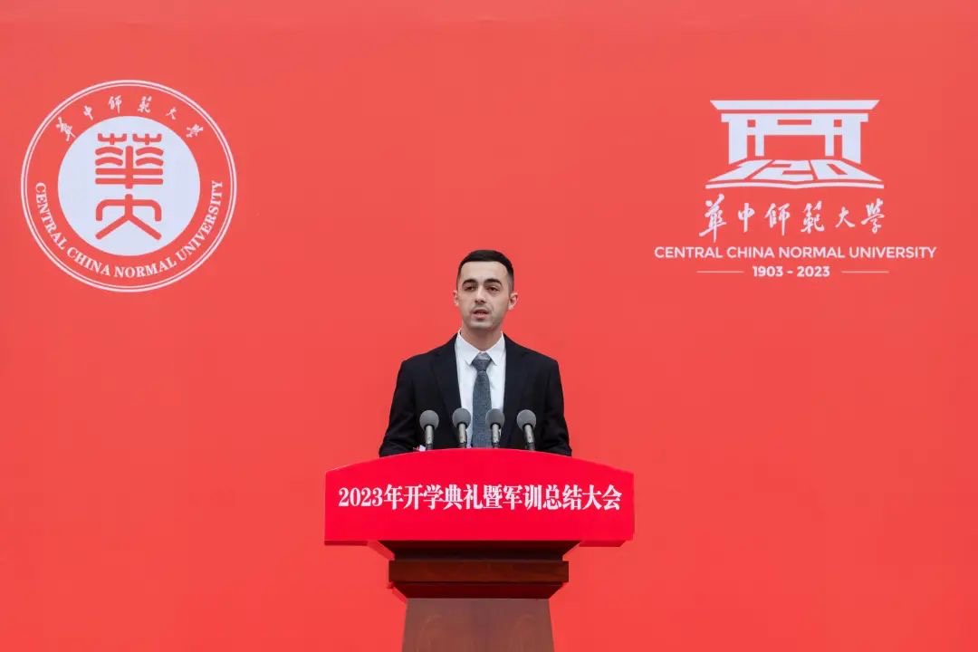 “在我踏進桂子山的那一刻,我就強烈地感受到了校園的美麗、老師們的熱情和同學們的友善。”國際學生新生代表、國際文化交流學院2023級阿塞拜疆籍漢語國際教育專業碩士研究生肖煜飛期待與全體新生一起,在桂子山這座知識的殿堂里學習交流,攜手成長,將華師故事、中國聲音帶向世界。