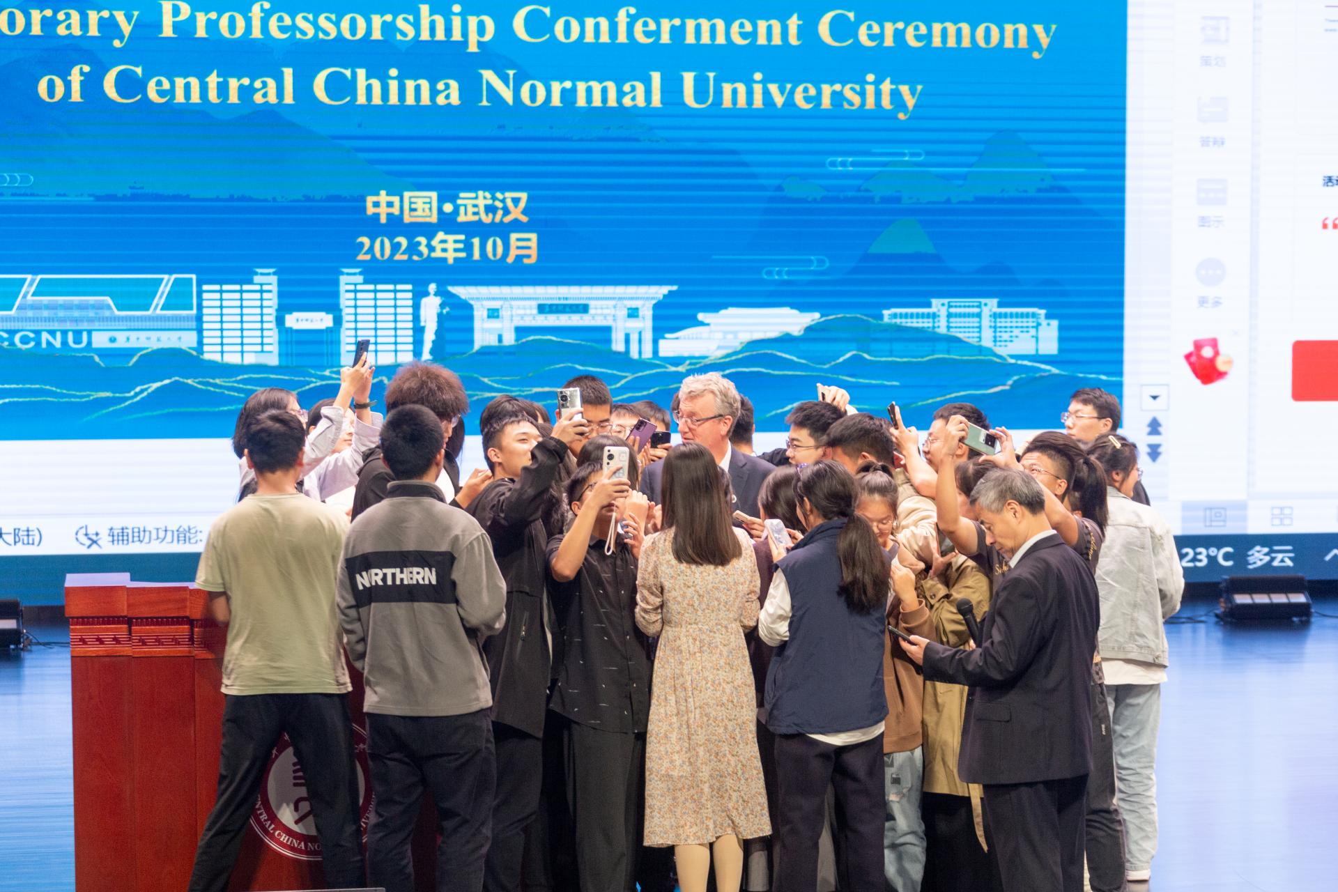 化學學院肖文精教授向在座師生介紹了戴維·麥克米倫教授的學術科研經歷以及成就。戴維·麥克米倫教授是2021年諾貝爾化學獎得主,享譽全球的卓越化學家,在有機催化領域取得了舉世矚目的杰出成就,是光化學新技術領域的重要開拓者。