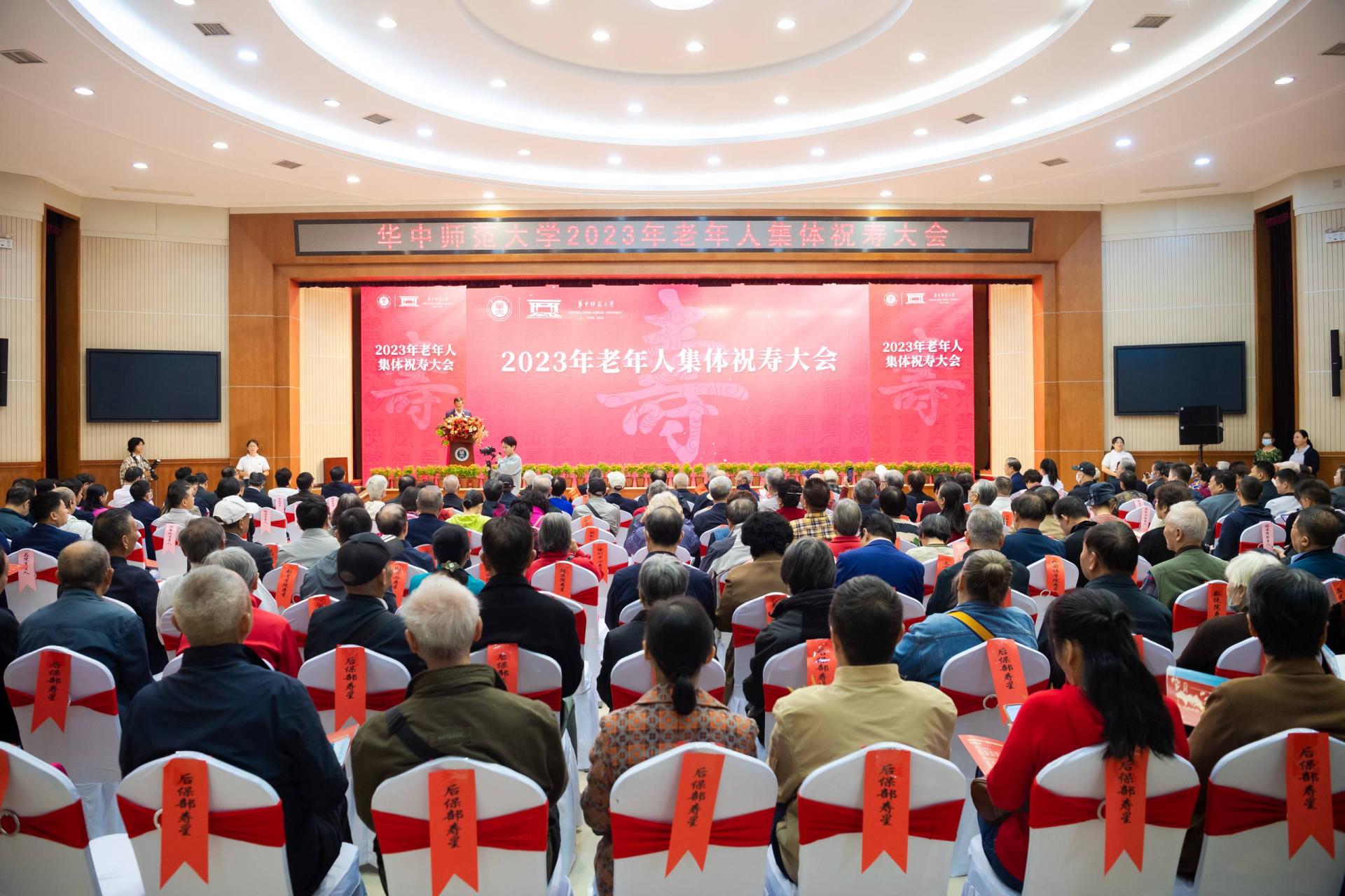 華大在線訊(記者 郝日虹 曾楚航)流年不棄桑榆晚,春光冉冉映重陽(yáng)。10月23日,學(xué)校2023年老年人集體祝壽大會(huì)在科學(xué)會(huì)堂一樓報(bào)告廳舉行。我校年滿(mǎn)90歲、80歲、70歲的壽星代表齊聚一堂,共度重陽(yáng)佳節(jié)。全體校領(lǐng)導(dǎo),先進(jìn)老人標(biāo)兵、先進(jìn)老人代表,離退休工作領(lǐng)導(dǎo)小組成員單位負(fù)責(zé)人,各單位主要負(fù)責(zé)人和離退休工作聯(lián)系人以及學(xué)生代表參加大會(huì)。大會(huì)由校黨委副書(shū)記查道林主持。