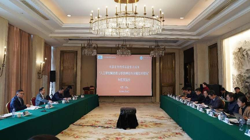 楊宗凱介紹了項目整體工作進展、階段性成果及下一步工作計劃。相關課題負責人圍繞研究任務實施情況進行匯報。在聽取項目組匯報和深入討論的基礎上,與會專家對項目取得的進展給予充分肯定,并聚焦“人工智能+教育”開展有組織科研,緊密圍繞項目總體目標與關鍵科學問題協同攻關等方面提出意見建議。