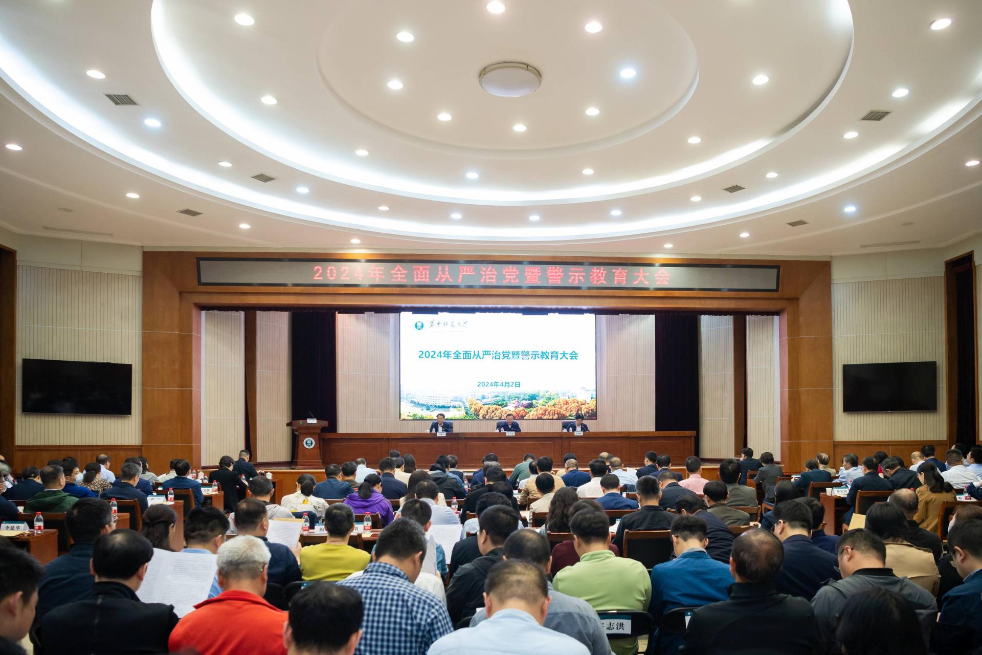 華大在線訊(通訊員 涂敏)4月2日,學校召開2024年全面從嚴治黨暨警示教育大會。校黨委書記夏立新作學校全面從嚴治黨工作報告。校長、黨委副書記彭雙階主持會議。校黨委副書記、紀委書記劉繼文總結并部署學校紀檢監察巡察工作。