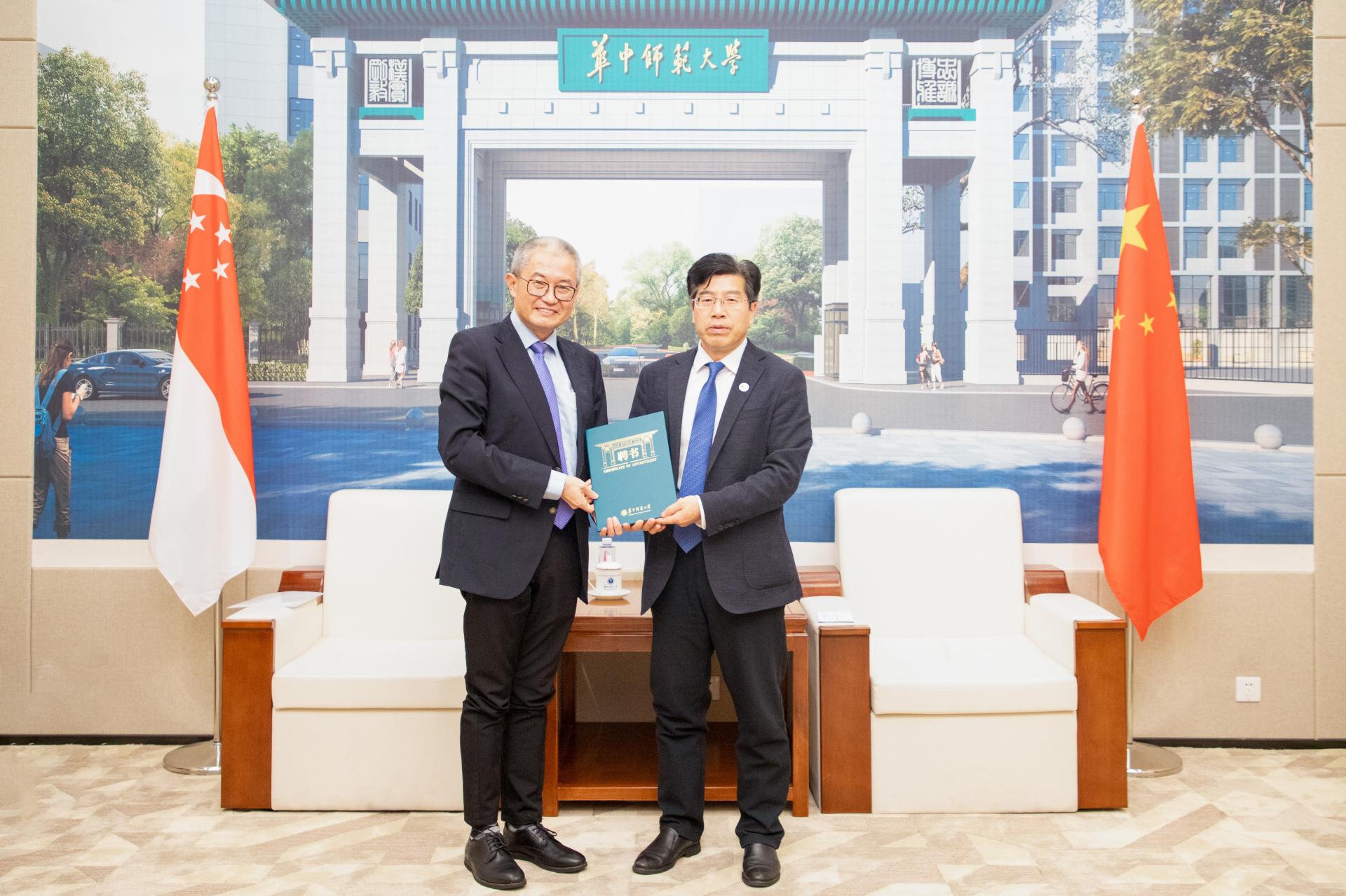 華大在線訊(通訊員 曹璐萍)4月9日,新加坡南洋理工大學常務副校長兼教務長林杉(LING San)來訪并受聘為我校名譽教授。聘任儀式在校史館一樓貴賓廳舉行,校長彭雙階出席。人事部、國際合作與交流處、數(shù)學與統(tǒng)計學學院相關負責人參加。