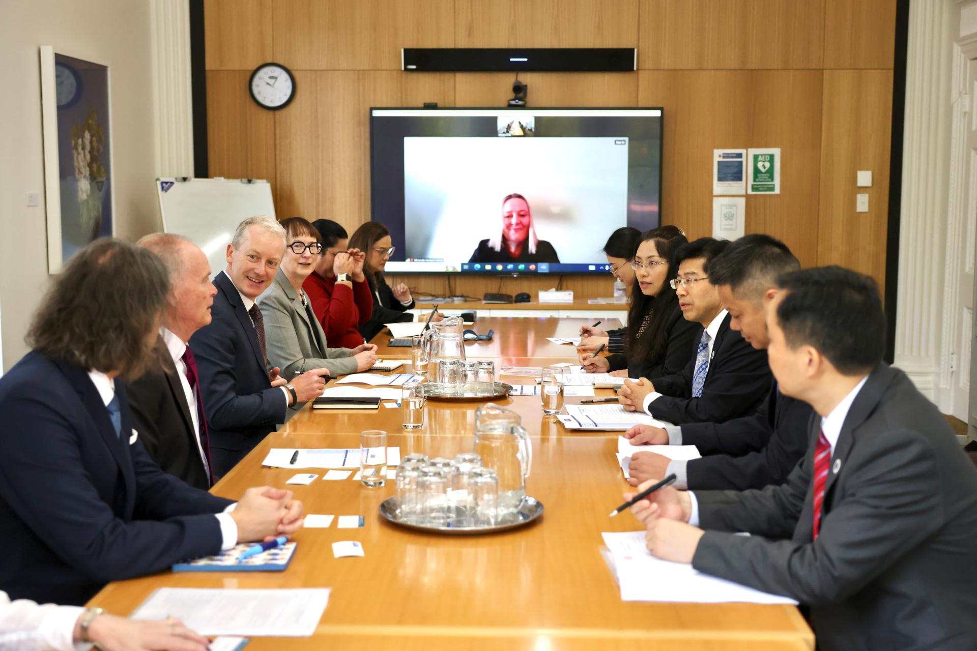 5月21日,代表團訪問澳大利亞紐卡斯?fàn)柎髮W(xué),與紐卡斯?fàn)柎髮W(xué)校長阿列克斯·澤林斯基(Alex Zelinsky AO)教授、副校長肯特·安德森(Kent Anderson)教授以及紐卡斯?fàn)柎髮W(xué)孔子學(xué)院外方院長王家娉等舉行會談。兩校續(xù)簽了學(xué)生交換項目合作協(xié)議。雙方高度肯定紐卡斯?fàn)柎髮W(xué)孔子學(xué)院取得的豐碩辦學(xué)成果,期待依托孔子學(xué)院平臺,進一步深化合作。雙方深入探討了在教育學(xué),特別是數(shù)字化教育、融合教育等領(lǐng)域加強合作。阿列克斯·澤林斯基表示,華中師范大學(xué)是紐卡斯?fàn)柎髮W(xué)最重要的戰(zhàn)略合作伙伴之一,誠摯邀請我校領(lǐng)導(dǎo)出席該校將于明年舉辦的60周年校慶。會后,兩校召開紐卡斯?fàn)柎髮W(xué)孔子學(xué)院理事會會議。雙方同意共同努力,克服困難,辦好孔子學(xué)院,為促進中澳人文交流做出新貢獻(xiàn)。