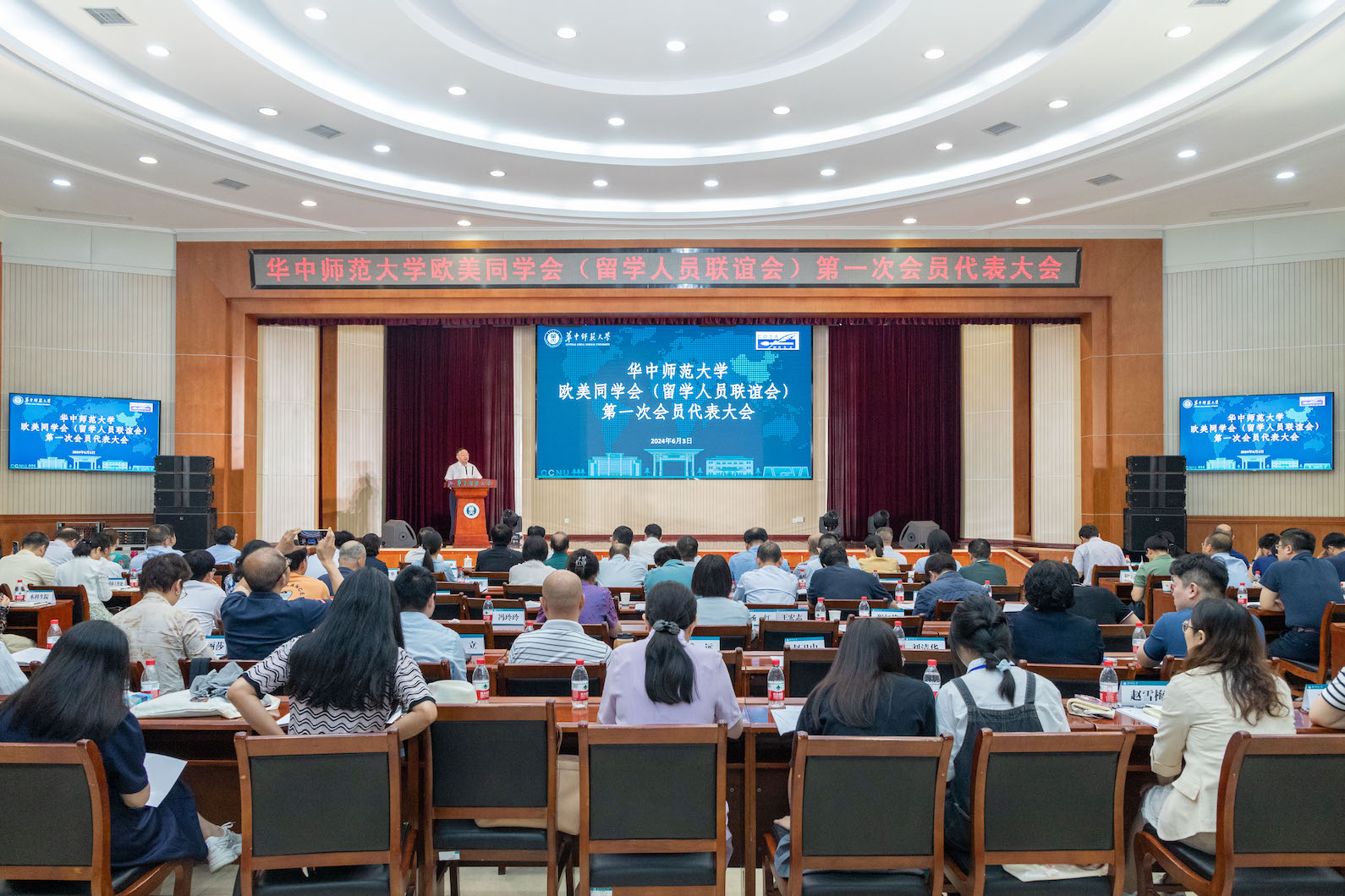 華大在線訊(通訊員 鄧果 記者 范彥芳 實(shí)習(xí)記者 劉翠蝶)6月3日,華中師范大學(xué)歐美同學(xué)會(huì)(留學(xué)人員聯(lián)誼會(huì))(以下簡稱“校歐美同學(xué)會(huì)”)第一次會(huì)員代表大會(huì)在科學(xué)會(huì)堂一樓報(bào)告廳舉行。湖北省委統(tǒng)戰(zhàn)部副部長張勇強(qiáng)、湖北歐美同學(xué)會(huì)(湖北留學(xué)人員聯(lián)合會(huì))專職副會(huì)長劉來、校黨委書記夏立新、校長彭雙階、校黨委副書記查道林等出席。我校統(tǒng)一戰(zhàn)線工作領(lǐng)導(dǎo)小組成員單位主要負(fù)責(zé)人、學(xué)校各分黨委(黨總支)主要負(fù)責(zé)人、各民主黨派和統(tǒng)戰(zhàn)團(tuán)體負(fù)責(zé)人、校歐美同學(xué)會(huì)第一次會(huì)員代表大會(huì)代表參加大會(huì)。