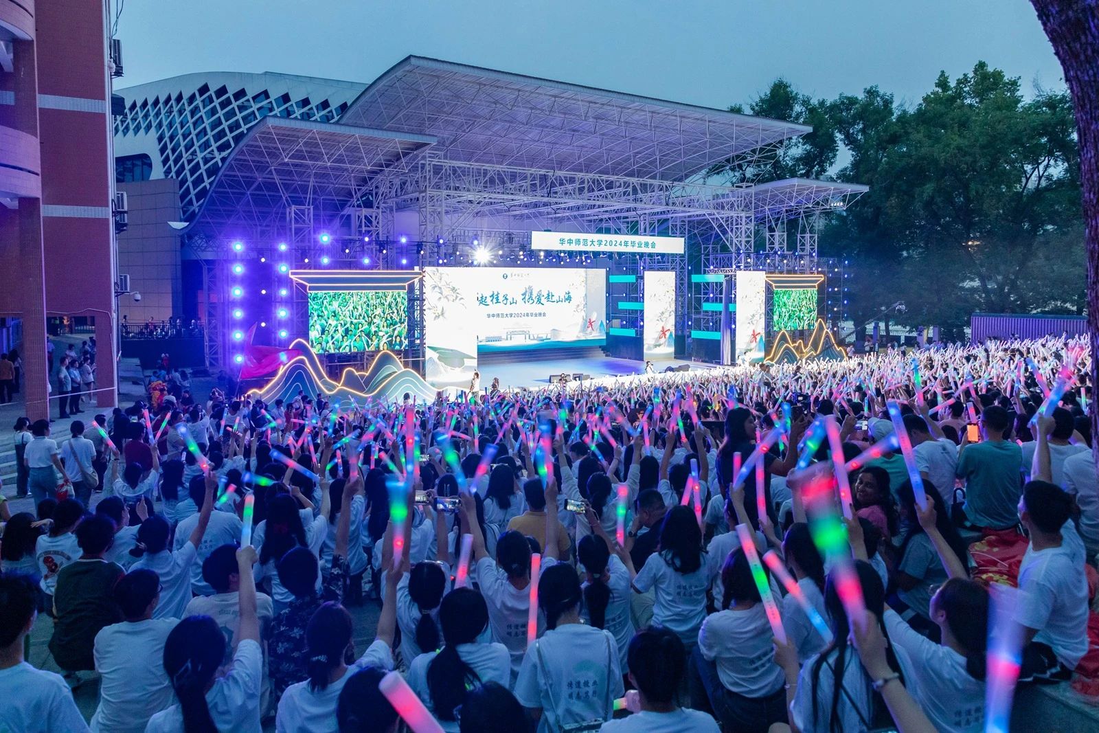 “夢起桂子山 攜愛赴山海”2024年畢業晚會于大學生活動中心設置分會場,中國青年報、長江日報、極目新聞、青春武漢、華大青年等多家媒體平臺同步進行了直播。