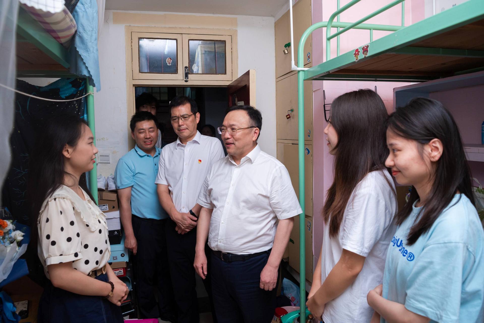 華大在線訊(記者 華軒 實(shí)習(xí)記者 李輝煌 崔博然)近日,校黨委書記夏立新、校長(zhǎng)彭雙階、校黨委副書記陳迪明先后走訪畢業(yè)生寢室,了解畢業(yè)生離校情況,為即將離校的畢業(yè)生送上美好祝福。學(xué)校辦公室、黨委宣傳部、黨委學(xué)生工作部、后勤保障部、保衛(wèi)處主要負(fù)責(zé)人參加。