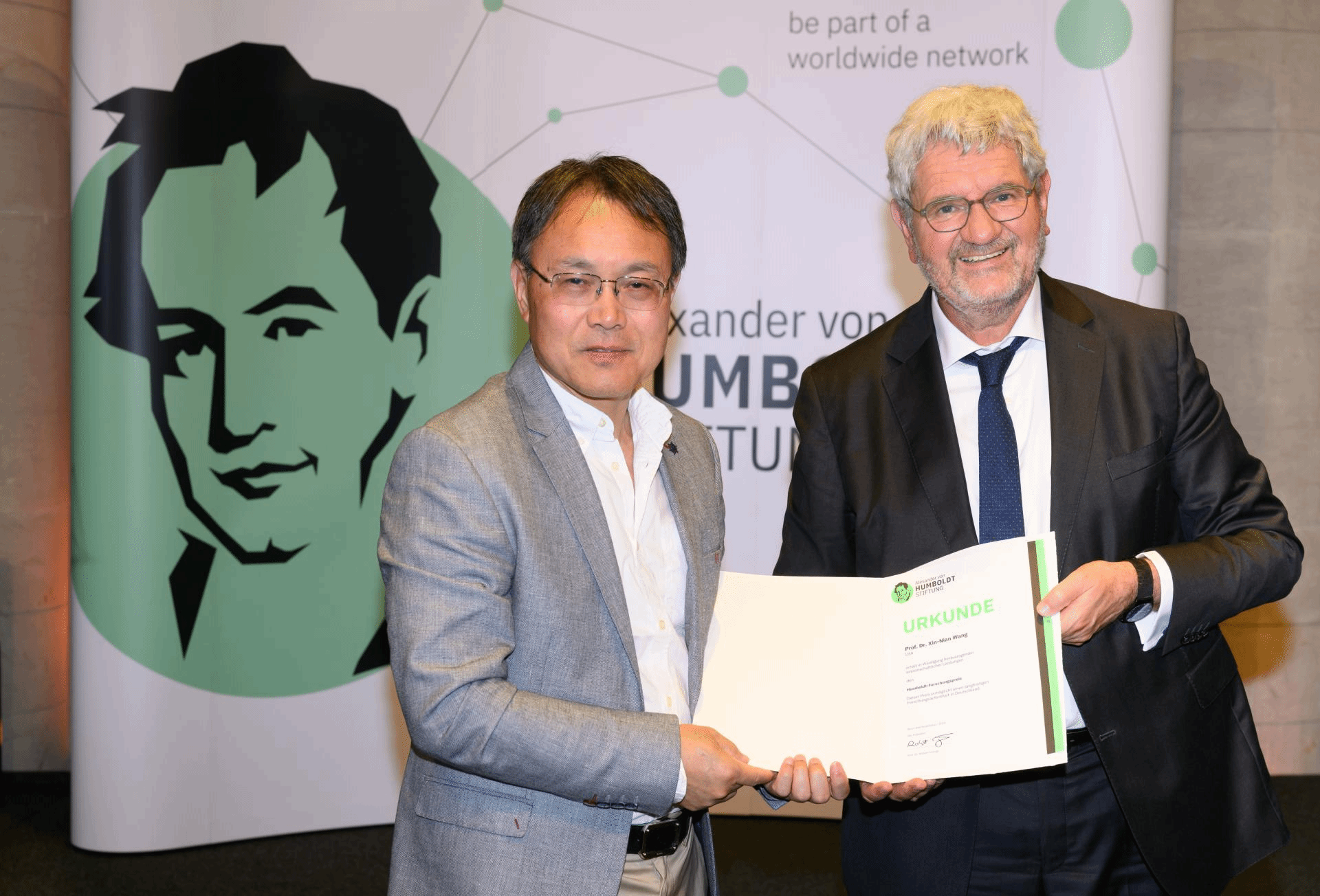 洪堡研究獎(Humboldt Research Award),是由德國亞歷山大·洪堡基金會于1972年設立的,旨在全球范圍內獎勵在基礎研究、理論創新、學科引領等方面取得卓越成就的科學家,每年頒發不超過100名獲獎者。獲獎者將被邀請到德國的科研機構進行合作研究,以促進國際科研合作與交流。洪堡研究獎不接受個人申請,只能由德國著名科研機構或者洪堡研究獎獲得者聯合推薦。被推薦人必須取得有國際影響力的學術成果,未來幾年能繼續活躍在學術領域從事科學研究工作。