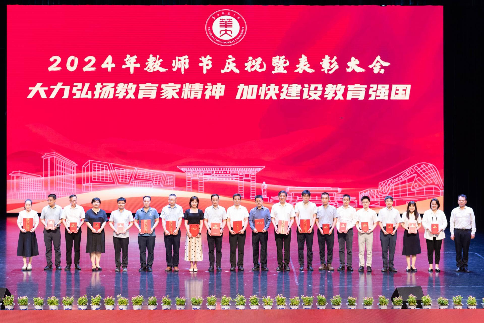 校黨委書記夏立新在總結講話中表示,作為教師教育的國家隊,學校深入學習貫徹習近平總書記關于教育的重要論述,引導廣大教師傳承弘揚教育家精神,厚植教育家情懷。廣大教師深耕教學科研一線,潛心育人、精研學術、無私奉獻,為學校事業高質量發展作出了重大貢獻。立足百廿華師事業發展嶄新起點,為全面貫徹落實全國教育大會和中央文件精神,夏立新希望全體教師傳承紅色基因,爭當政治堅定、至誠報國的信仰之師,牢記為黨育人、為國育才初心使命,自覺用習近平新時代中國特色社會主義思想武裝頭腦,在立身立德立言立行中鑄魂育人;希望全體教師涵養扎實學識,爭當思維創新、視野廣闊的有識之師,心系“國之大者”,堅持“四個面向”,將學術志趣與國家戰略緊密結合,努力產出更多具有原創性、突破性、開創性的創新成果,引領廣大學生追求真理真知;希望全體教師潛心立德樹人,爭當樂教愛生、甘于奉獻的仁愛之師,繼續發揚學校優良傳統,以人格魅力呵護學生心靈,以學術造詣開啟學生智慧,引導學生成長為國家急需的拔尖創新人才。學校黨委將堅持以教師為本,堅定實施“人才強校”戰略,為各位老師潛心教書、靜心育人提供堅強保障。