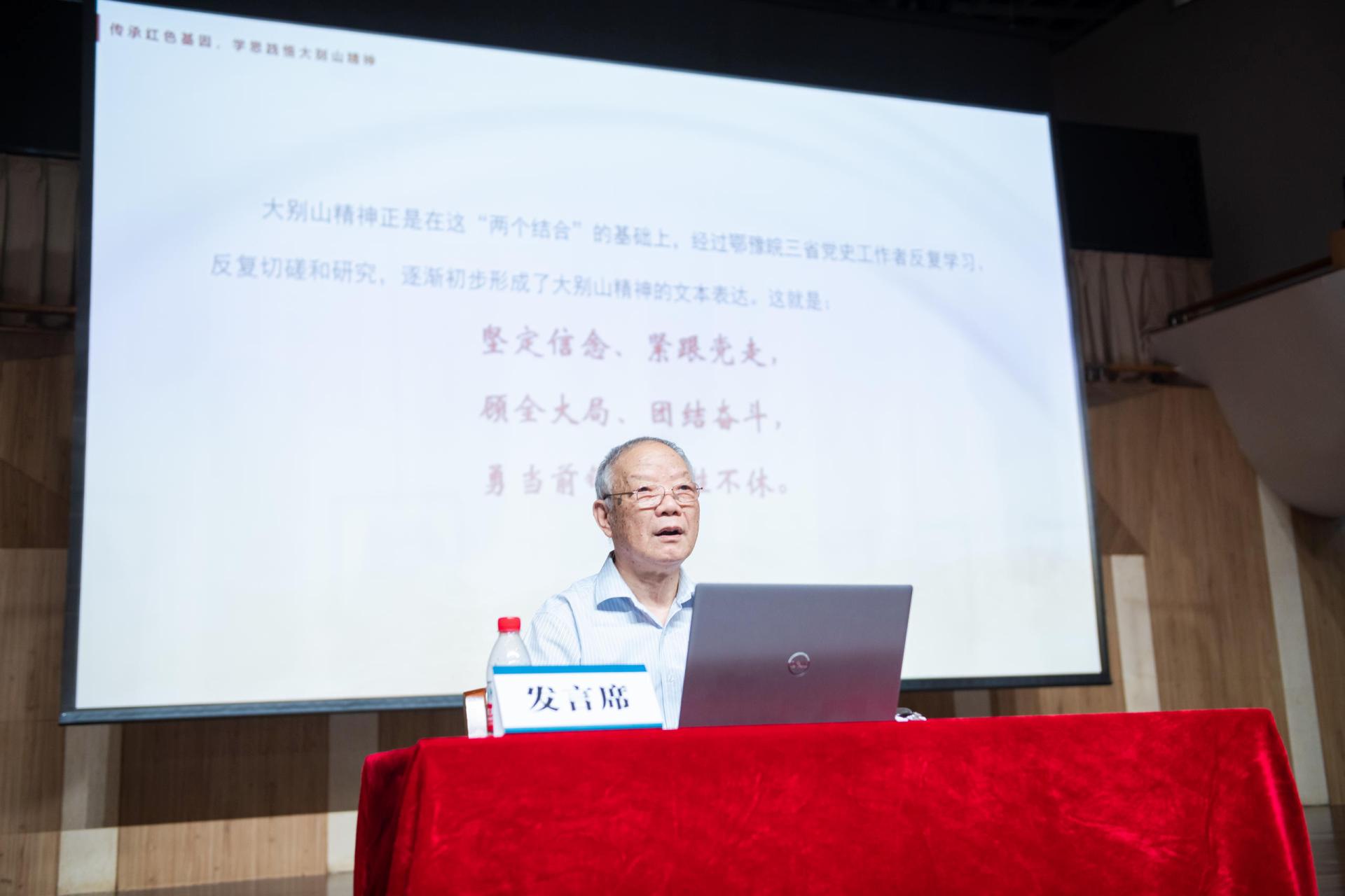 北京大學馬克思主義學院馬藏研究中心特聘研究員、我校桂岳卓越教授李良明以《傳承紅色基因學思踐悟大別山精神》為題,介紹了習近平總書記首次提出“大別山精神”概念的背景。“堅守信念,緊跟黨走;顧全大局,團結奮斗;勇當前鋒,不勝不休”的大別山精神,是中國共產黨人精神譜系中的重要組成部分。在新長征路上要學習領會好大別山精神,增強“四個意識”、堅定“四個自信”、做到“兩個維護”,讓大別山精神成為開啟全面建設社會主義現代化國家新征程、向第二個百年奮斗目標進軍的強大精神動力。