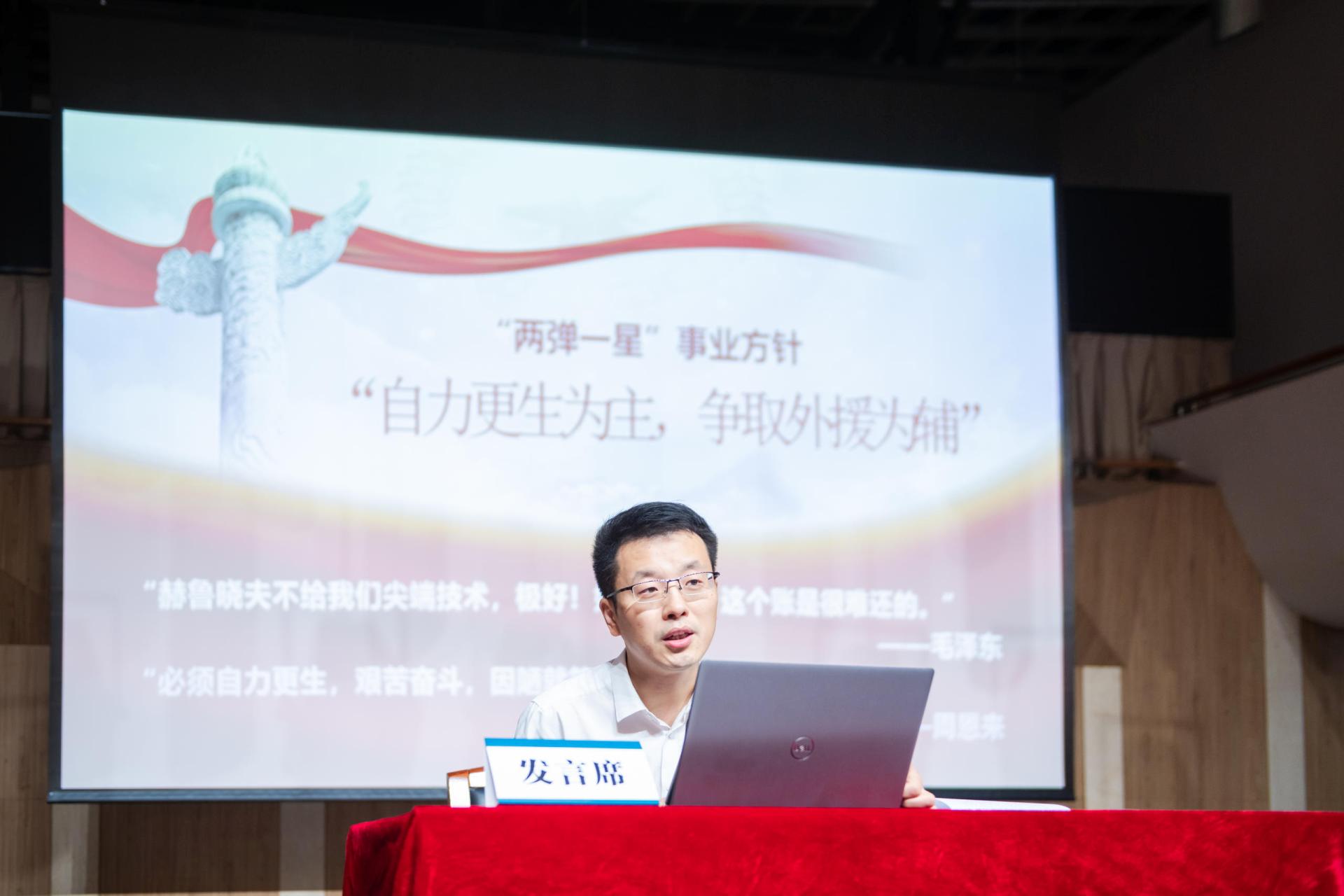 南京航空航天大學能動學院黨委書記、最美教師、黨的二十大代表徐川講起了老一輩科學家干驚天動地事、做隱姓埋名人的感人故事,闡釋了以“熱愛祖國、無私奉獻,自力更生、艱苦奮斗,大力協同、勇于登攀”為內涵的“兩彈一星”精神。徐川表示,對歷史最好的紀念是創造全新的歷史,對精神最好的傳承是弘揚偉大的精神。黨的二十屆三中全會提出了推進高水平科技自立自強的戰略目標,希望同學們從偉大的“兩彈一星”精神中汲取力量,奮力書寫為中國式現代化挺膺擔當的青春篇章。