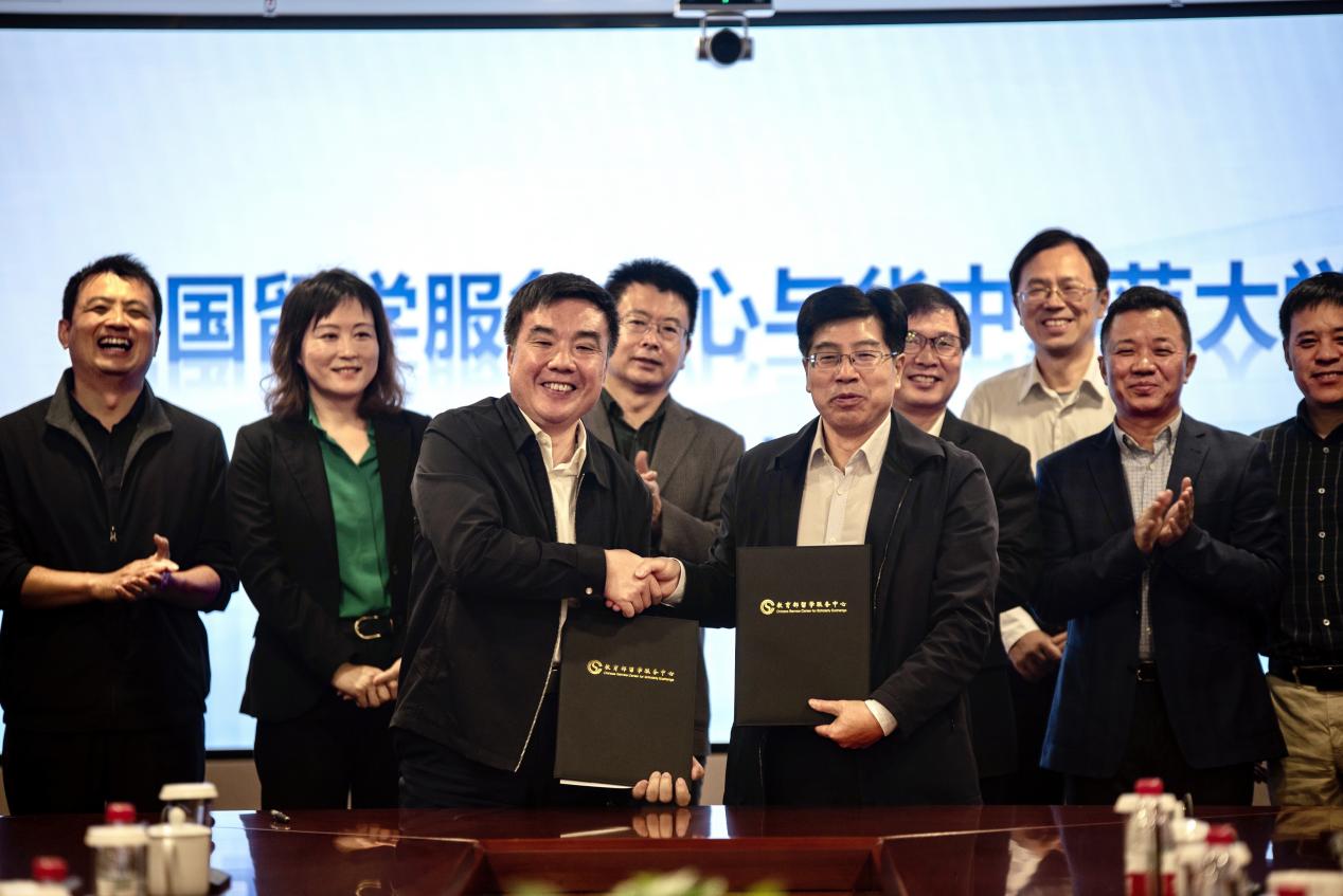 華大在線訊(通訊員 阮劭)10月8日,校長彭雙階、副校長任友洲帶隊(duì)訪問教育部留學(xué)服務(wù)中心(以下簡稱“中留服”),中留服黨委書記、主任王大泉,副主任夏建輝會(huì)見彭雙階、任友洲一行并進(jìn)行座談。彭雙階和王大泉代表雙方簽署全面戰(zhàn)略合作協(xié)議,開啟我校與中留服開放化辦學(xué)合作新篇章。
