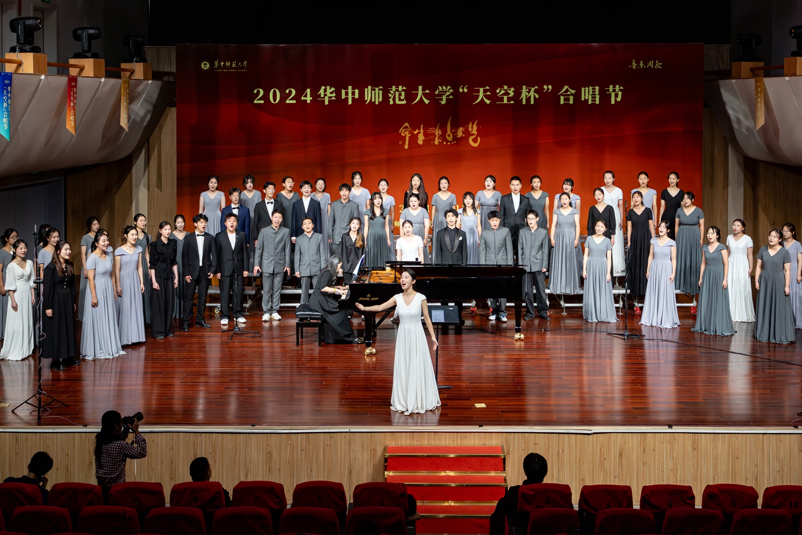 華大在線訊(通訊員 劉馨怡 郭康源 陳龔澤祖)為全面貫徹落實習近平總書記關于學校美育的重要指示精神,充分發揮美育在立德樹人中的獨特作用,11月10日,我校2024“天空杯”合唱節在音樂廳舉行。本屆合唱節合唱體驗周、藝術教育發展研討會、藝美大講壇、合唱比賽等系列活動,由大學生美育(藝術)教育中心主辦,音樂學院承辦,共青團華中師范大學委員會協辦。