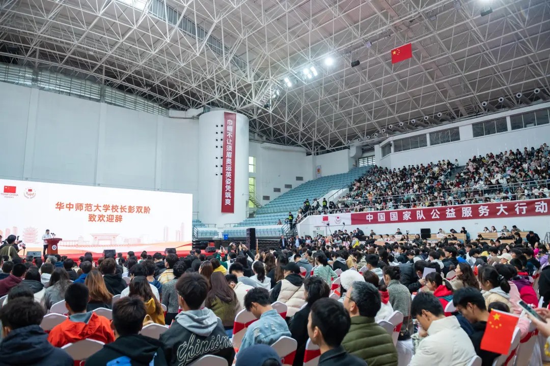 彭雙階在致辭中表示,作為一所走過121年光輝歷程的百年老校,華中師范大學有重視體育、崇尚體育的傳統,非常重視體育事業的發展,現已建設成為中南地區培養體育師資和各類體育專業人才的搖籃。近年來,學校將增強體育與藝術素養作為人才培養體系改革的重要內容,多位學子在國內外體育賽事中屢獲佳績,充分展示了華師以體育人體教融合的成果。今天四位奧運健兒走進校園,希望大家通過與他們近距離地交流,深刻認識到體育的意義和價值,學習他們堅韌不拔、勇于挑戰的精神,為實現中國式現代化而努力拼搏。