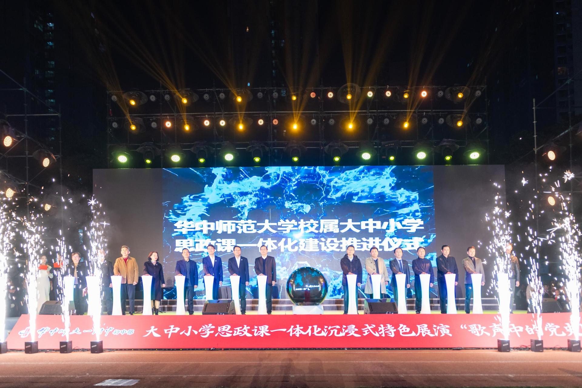 展演期間,還舉行了“華中師范大學校屬大中小學思政課一體化建設推進儀式”,旨在進一步加強我校和附屬中小學及合作辦學中小學的思政課建設的交流協作,打造思政課一體化建設體系。
