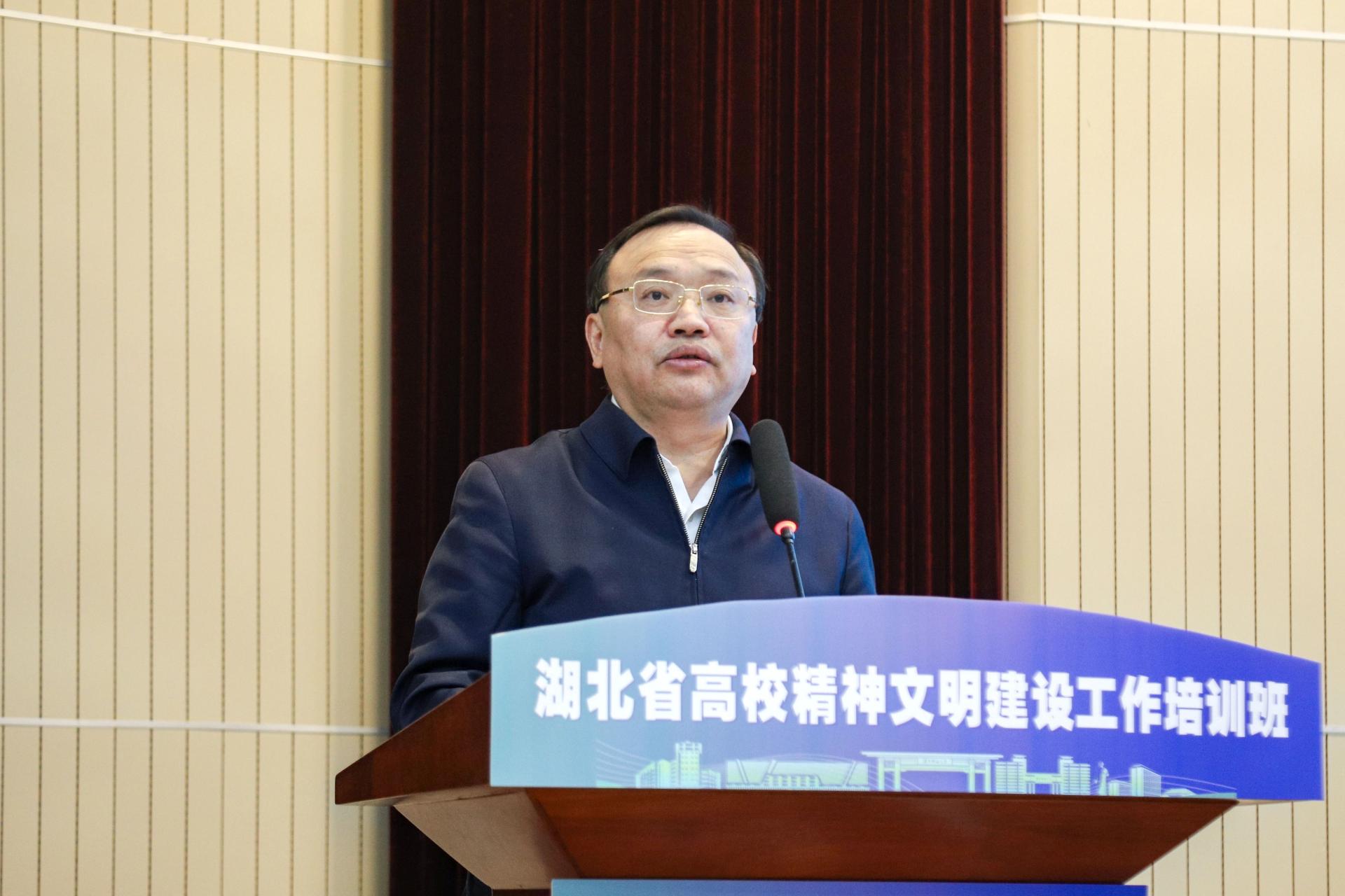 夏立新在致辭中表示,華中師大始終將文明校園創建作為“一把手工程”,深入學習貫徹習近平總書記關于教育和精神文明建設的重要論述,緊扣“六好”標準,深化踐行博愛、博學、博雅的“三博”理念,大力弘揚教育家精神,創新實施“理響華師”“紅色華師”“強教華師”“文化華師”“大美華師”“平安華師”等“六大工程”,著力構建落實立德樹人根本任務新生態新格局,以高質量文明建設推進學校事業高質量發展。精神文明建設事關教育大局、發展全局,具有重大戰略意義。期待各位學員培訓期間深入學習交流,分享寶貴經驗,共同推動湖北高校精神文明建設邁上新臺階,為培養堪當民族復興重任的時代新人、建設教育強國和文化強國、建設中華民族現代文明作出湖北高校應有的貢獻。
