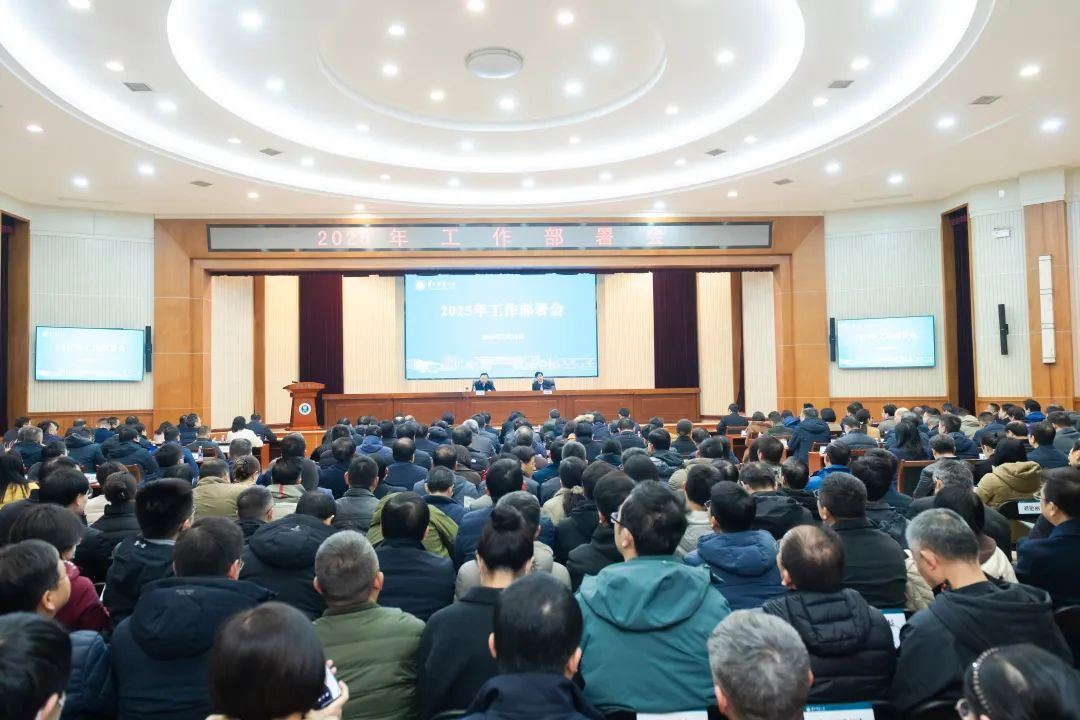 華大在線訊(記者 華軒)2月16日,學校召開2025年工作部署會。全體校領導、全體中層干部、教代會執委代表、民主黨派基層組織和統戰團體主要負責人代表參加會議。校長彭雙階回顧2024年工作并部署2025年工作,校黨委書記夏立新主持會議并講話。