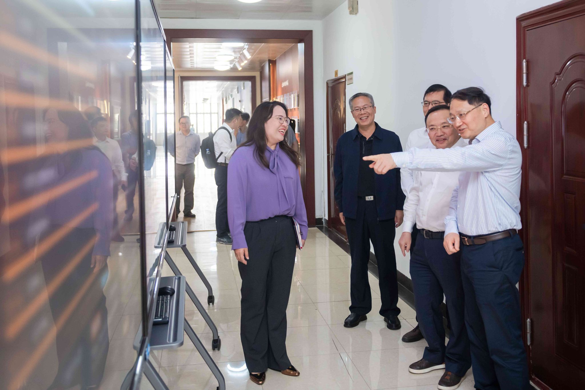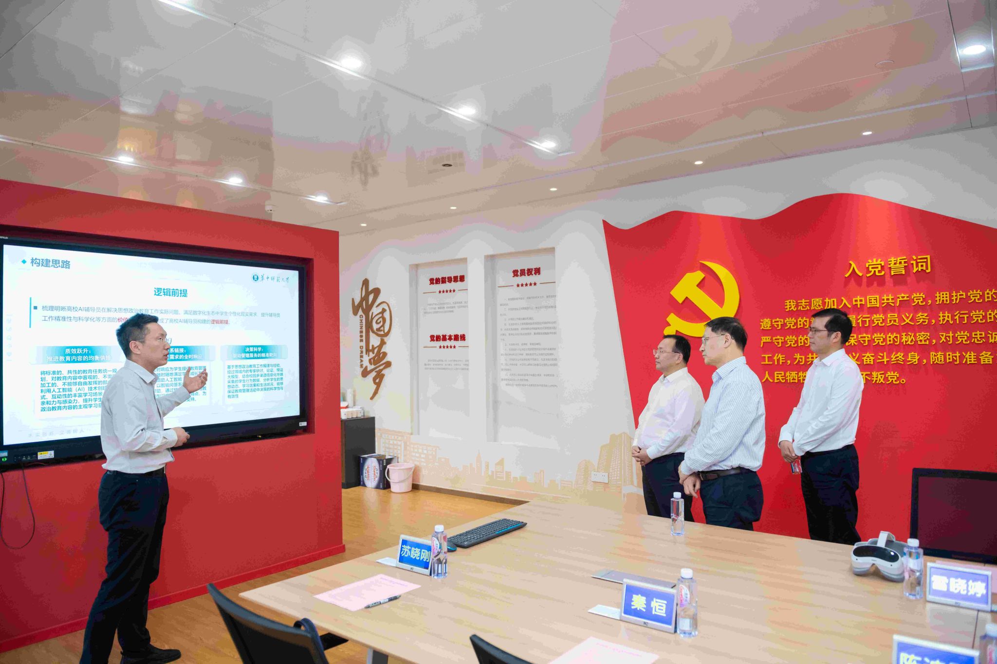教育部思政司黨建統(tǒng)戰(zhàn)處、宣傳教育處相關(guān)人員,我校黨委組織部、黨委宣傳部、黨委學(xué)生工作部、校團(tuán)委、保衛(wèi)處、信息化辦公室、人工智能教育學(xué)部、文學(xué)院等相關(guān)單位負(fù)責(zé)人參加調(diào)研活動(dòng)。