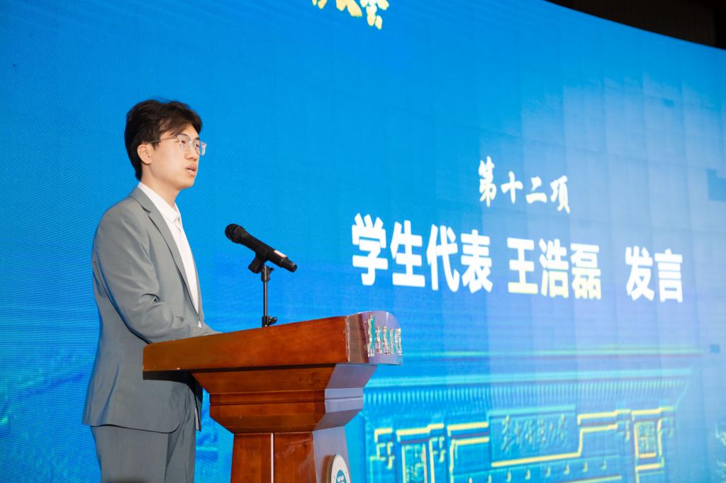 學(xué)生代表、文學(xué)院王浩磊同學(xué)回顧了自己在華師的所見(jiàn)所聞所感,表達(dá)了自己對(duì)老師們的由衷感謝。他說(shuō),未來(lái)將繼續(xù)刻苦學(xué)習(xí)、砥礪品格,懷抱對(duì)教育事業(yè)的滿腔熱情,堅(jiān)定地站上祖國(guó)各地的講臺(tái),在培養(yǎng)中華民族“夢(mèng)之隊(duì)”的進(jìn)程中書寫無(wú)悔青春。