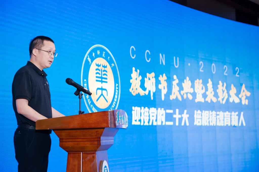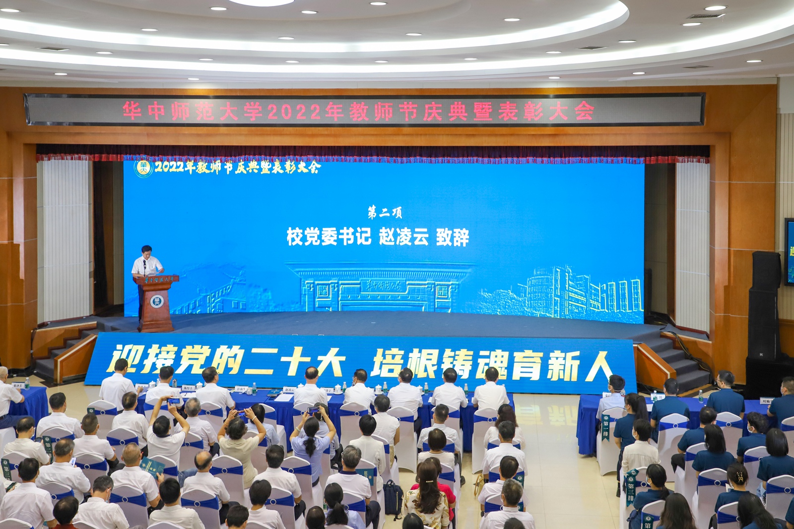 大會(huì)在雄壯的國(guó)歌聲中拉開帷幕,校黨委書記趙凌云代表學(xué)校黨委、行政,向廣大在崗和榮休的教師致以崇高的敬意,向新加入華師大家庭的青年教師表示誠(chéng)摯的歡迎,向關(guān)心支持學(xué)校事業(yè)發(fā)展的廣大校友和社會(huì)各界人士表示衷心的感謝!