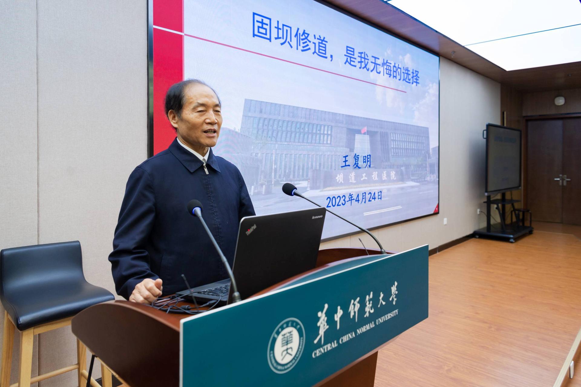 座談會(huì)前,王復(fù)明院士作客我校第二期“院士大講堂”,在南湖綜合樓10127學(xué)術(shù)報(bào)告廳,為我校師生做《固壩修道,是我無悔的選擇》專題講座,通過一個(gè)個(gè)親身經(jīng)歷的鮮活事跡,介紹了他在面對(duì)國(guó)家重大需求面前,如何挺身而出,傾其所有,無怨無悔的科學(xué)研究歷程。王復(fù)明院士倡導(dǎo)和發(fā)起的壩道工程醫(yī)院目前已經(jīng)是世界上規(guī)模最大,場(chǎng)景最齊全的工程基礎(chǔ)設(shè)施檢測(cè)與修復(fù)綜合服務(wù)平臺(tái),并已實(shí)現(xiàn)跨地區(qū)、跨行業(yè)、網(wǎng)絡(luò)化的融合互通,引領(lǐng)行業(yè)領(lǐng)域?qū)W術(shù)及技術(shù)發(fā)展。