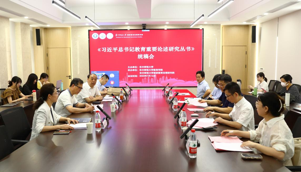 華大在線訊(通訊員 羅溢楓)7月16日,《習近平總書記教育重要論述研究叢書》統稿會以線上線下相結合的方式在田家炳樓901會議室舉行。中國教育學會副會長、華中師范大學國家教育治理研究院院長周洪宇,教育部社科司司長徐青森,副校長彭南生等出席。