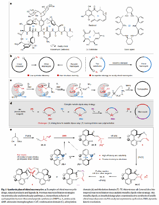 手性大環(huán)化合物作為藥物和功能材料的關(guān)鍵結(jié)構(gòu)單元,其合成一直是有機化學領(lǐng)域的重大挑戰(zhàn)。以"人類抗生素最后防線"萬古霉素為例,其核心結(jié)構(gòu)正是由軸手性聯(lián)芳基單元與大環(huán)內(nèi)酯構(gòu)成。傳統(tǒng)合成方法普遍面臨環(huán)化效率低、手性控制難等瓶頸問題,嚴重制約了這類化合物的開發(fā)應用。
